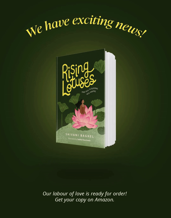 Rising Lotuses: Your Path to Blooming with Purpose is a guide for women of colour moving to the Global North, written by Shivani Baghel, and beautifully illustrated by Sadhvi Konchada.